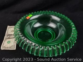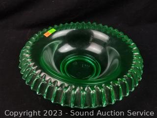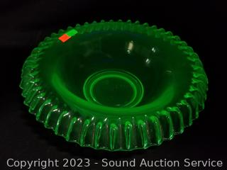 Lot #0071: Vtg. Uranium Glass Ruffled Edge Console Bowl