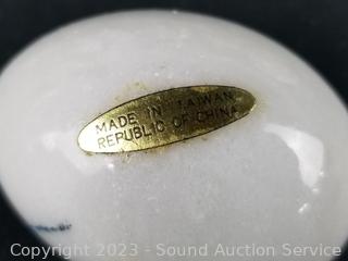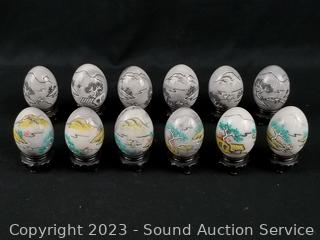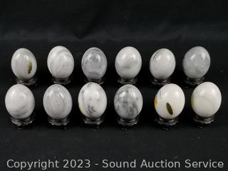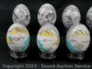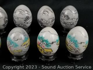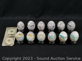 Lot #0184: 12ct Carved Painted Marble Eggs w/Stands