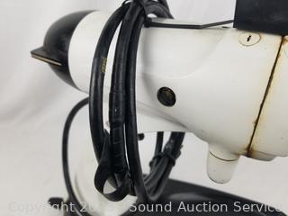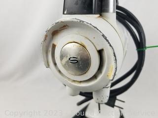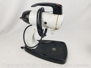 Both work. Various wear from age, use. White unit has a bad taped cord & missing deck plate for under bowl.
