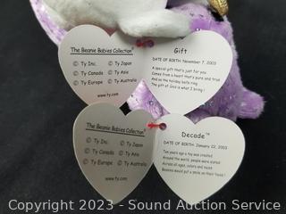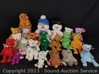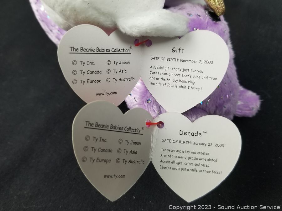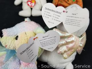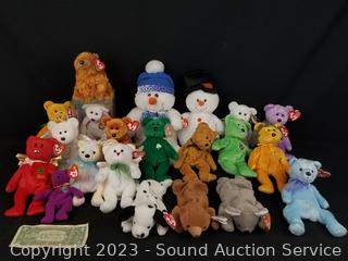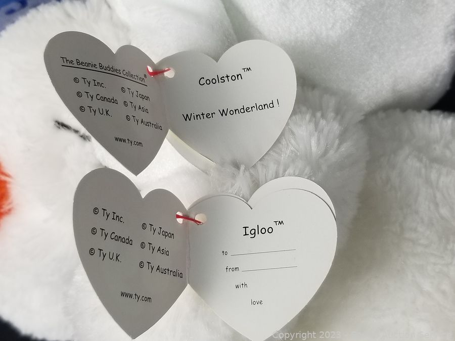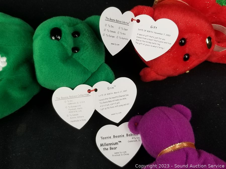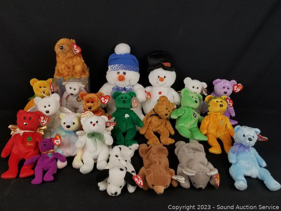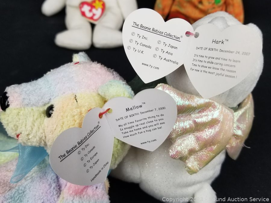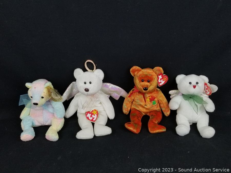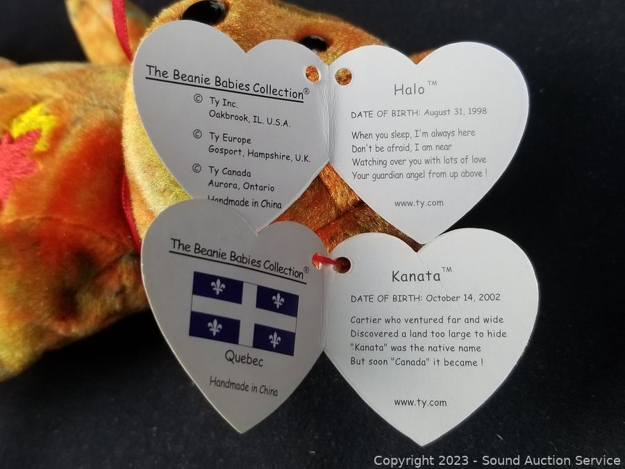 Contains one of the 20 most expensive Beannie Baby dolls, 1998 Halo Angel. Also includes 2007 Coolston Winter Wonderland, 2007 Igloo, 1997 Erin, 2000 Mellow, 1998 Fuzz, 2007 Hark, 1999 Millenium Bear Teenie, 2003 Decade, 1999 Kicks, 2004 Victory, 2003 Gift, 1993 Cubbie, 2004 Lani, 2002 Kanata, 2001 Sequoia, 1996 Mel, 2005 4-H, 2003 Gift, 1996 Dotty, 2001 Color Me Bear sealed in original packaging. All in excellent condition, with original tags.