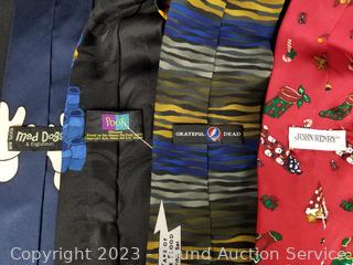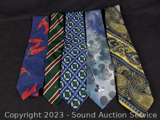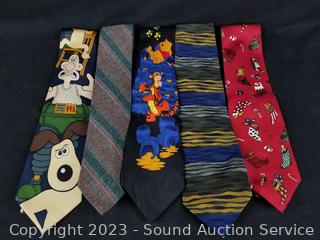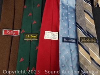 Some brands include, John Henry Silk, Harris Virgin Wool, Leeds Polyester, L.L. Bean, Lancashire, Disney Polyester/Silk, Rally Acetate, Paui Bri Paris, Wallace & Gromit, Ralph Lauren Chaps, Hardwick Wool, Winnie the Pooh Polyester, Lanvin Paris Silk, Gant Wool/Cotton, Via Re, Oxford Polyester, Heather Mist Wool Italy & others. All in great condition.