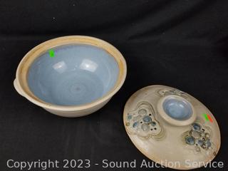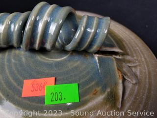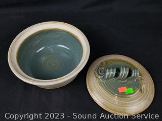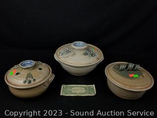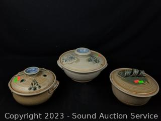Lot #0203: 3pc Tom? James Signed Pottery Covered Bowls