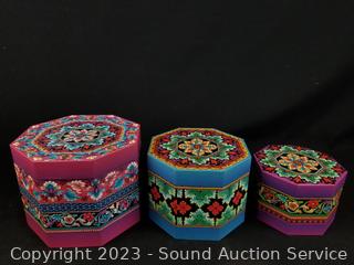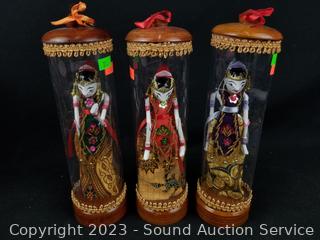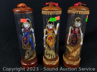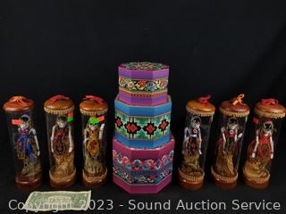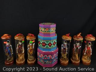 Lot #0031: 6 Indonesian Rod Puppets (Wayang Golek) & 3 Nesting Boxes