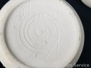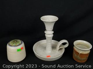 Several pieces are signed R.Perdew, T.James, Staulley & others, refer to photos for signatures. Bowls, covered dish, candleholder. 3.25" to 7.5" Dia. Don't see any issues.