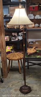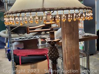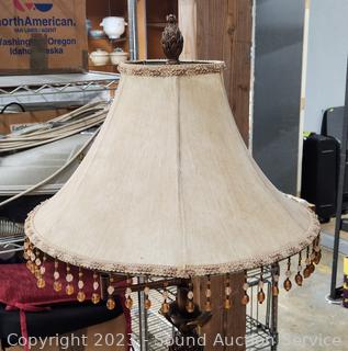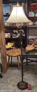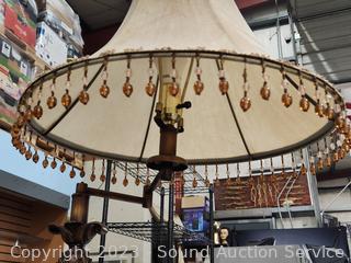 Beaded fringe shade. 64" tall, 178" dia. shade. Approx. 10" arm. In great working condition.