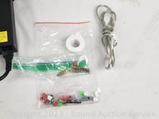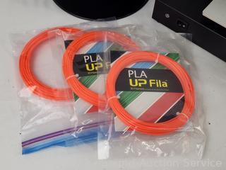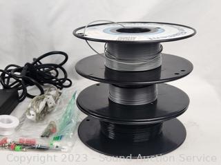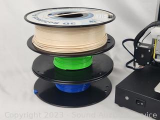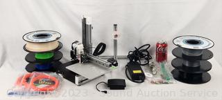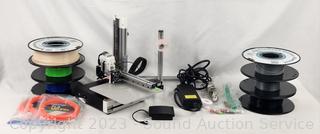Comes with several rolls & colors of filament, some mostly used. Has power, otherwise untested.