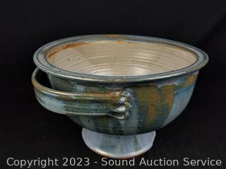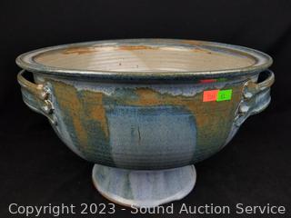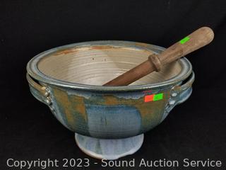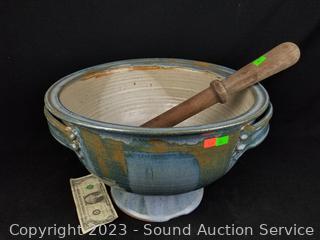 Lot #0063: Large Signed Ortrud "Trudy" Fowler Glazed Pottery Punch Bowl & Masher