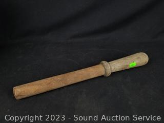 9" H x 14.5" Dia. punch bowl, signed on the bottom, refer to photos for signature. 15" club/masher?