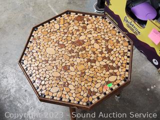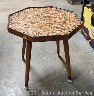 Lot #0194: Leaf Tile Inlaid Octagon Accent Table