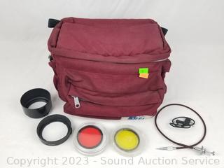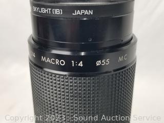 Some damage to body on one corner. Couldn't get shutter to function. Comes with Kiron 80-200mm f/4 macro 1:4 lens, filter, lens shade, bag.