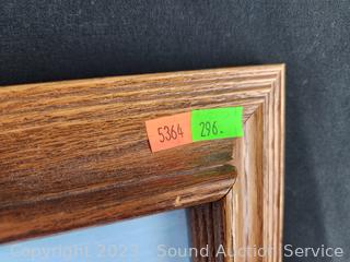 Nice oak frame, some minor scuffs on frame. 27" x 33".