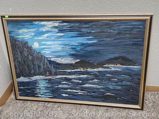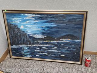 Lot #0293: Phyllis Signed Original Full Moon Oil Painting