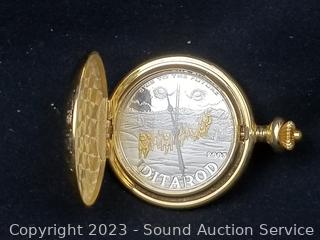 16" porcupine quill necklace. Pocket Watch face looks to be Iditarod .999 fine silver 1oz medallion, unable to get the watch to work.