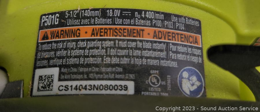 Lot #0081: Ryobi 18V Cordless Tool Set