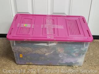 10.5" x 23" x 13" tote with lid. Refer to photos for lot contents.