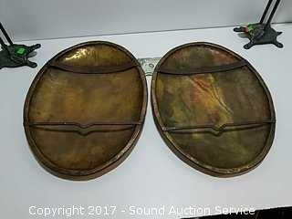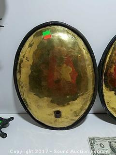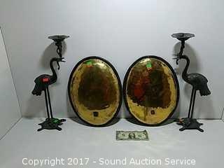 Lot #0120: Bronze Cranes & Hand Crafted Brass Shield Decor