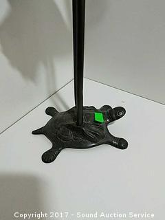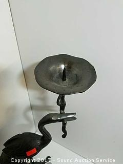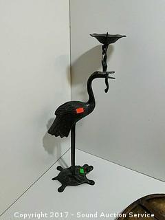 Shields are approx. 10.5" x 13.5" in diameter. 18" bronze crane candle holders.