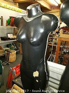 Stands approx. 66" tall. No arms or head. Does have some cracking on the side of the female mannequin.