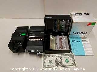 Lot #0138: Vtg. Rollei Beta 5 Flash, Vivitar Flash & Lenses