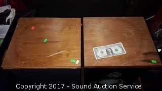 Some of the veneer is chipping off the back. Approx. 32" tall, 15" wide and 12" deep. Both work!