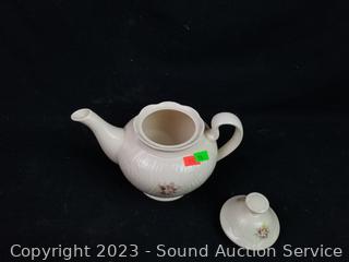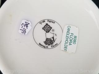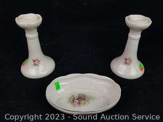 Teapot, (2) 6.75" H candleholders, 7" oval dish, (3) 8.5" plates. Don't see any issues.