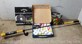 Lot #0202: Callaway Chipping Net, Swing Trainer & Various Golf Balls