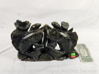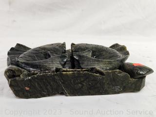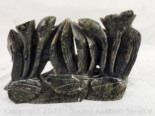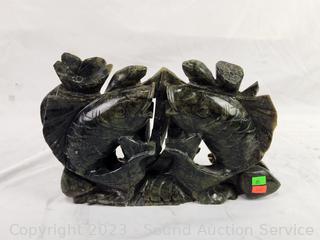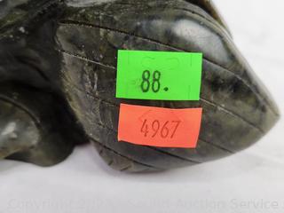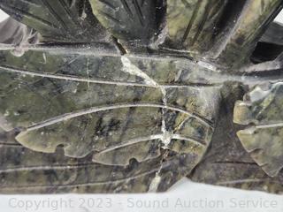 Looks like it has been broken in half and repaired at one point, also has some small chips. Approx. 8" H x 12" W x 1.75" D.