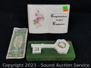 Lot #0098: Donegal Belleek Ireland Key & Engagement Plaque