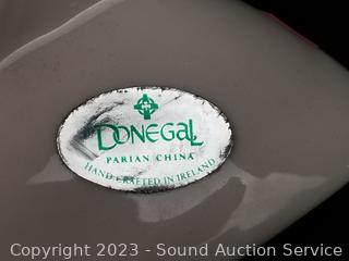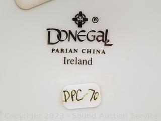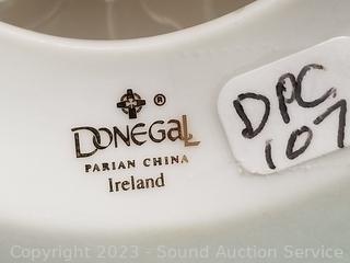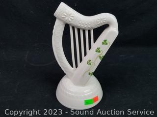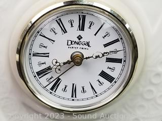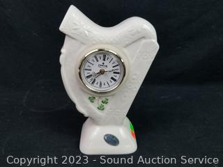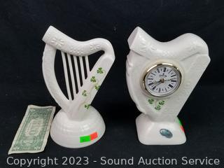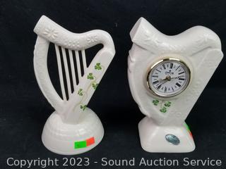 Lot #0100: Donegal Belleek Shamrock Harp Fine Porcelain Clock & Figure