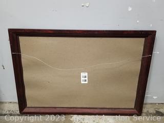 41" x 29". Setup for horizontal hang. See a small chip on one corner of frame. Don't see any other issues.