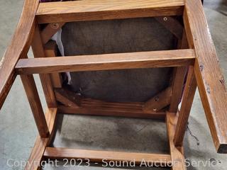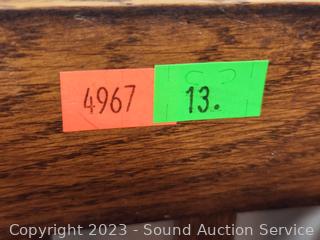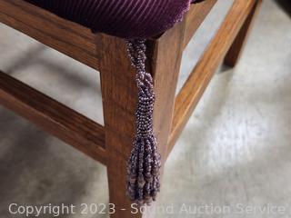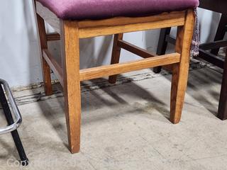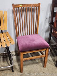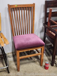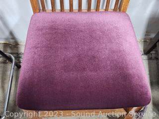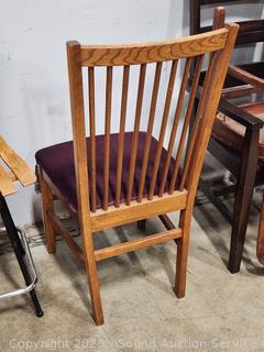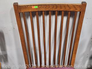 Lot #0013: Oak Spindle Back Maroon Upholstered Chair