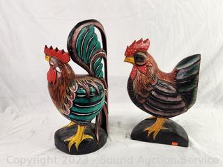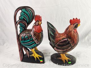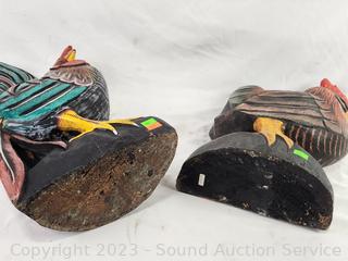 Lot #0103: Pair of Hand Painted Carved Wood Rooster Figures