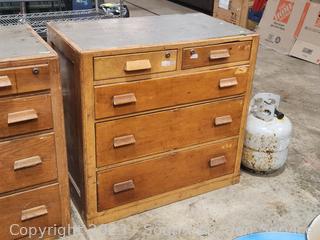 Lot #0038: Vintage 5-Drawer Oak Shop Cabinet