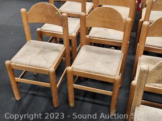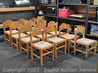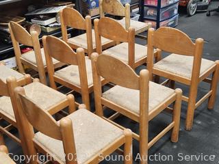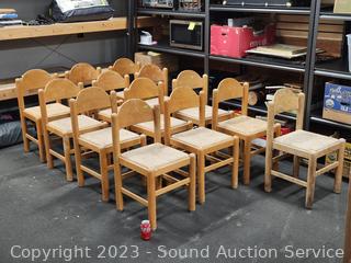 Lot #0282: 13 Rush Woven Seat Light Finish Chairs