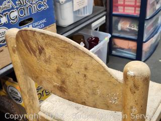Various wear to finish. 33" H x 17.5" W x 19" to seat. Refer to photos for more info.