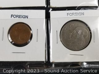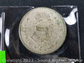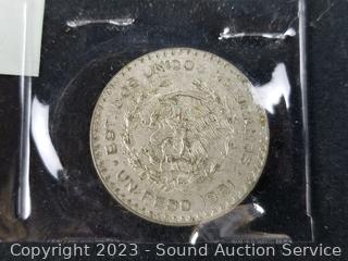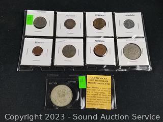 Lot #0125: 1961 Old Mexican Silver Dollar & Assorted Foreign Coins