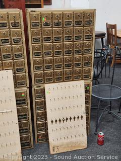 Each set is missing one of the 30 keys #227 & 236. Each set 26.5" H x 22-3/8" W x 14.5" D. All doors are functioning as intended. Rear access for easy loading.