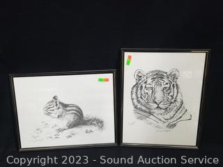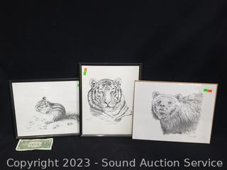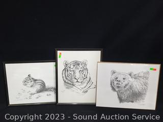 Chipmink 27/200, Grizzly Bear 70/500, Tiger 108/500. 11" x 14".