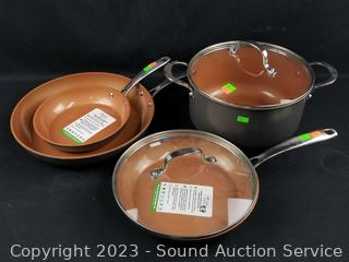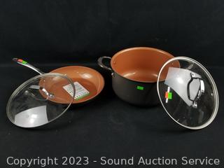 Lot #0269: 4pc Gorham Non-Stick Skillets & Boiling Pot w/2 Lids
