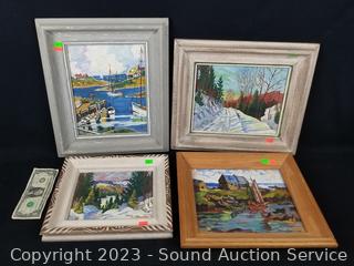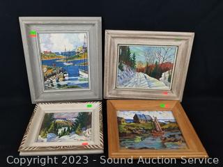 Lot #0077: 4pc Signed Original Oil Paintings
