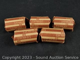 Lot #0193: (5) Rolls of Unsorted $10 US Kennedy Half Dollars