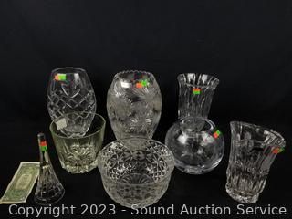 Lot #0089: 8pc Crystal Decor Vase, Bell, Pitcher, Bowl