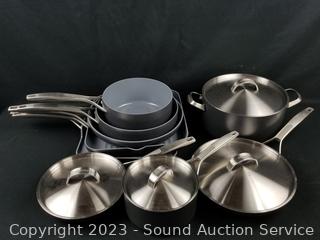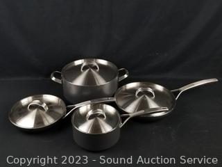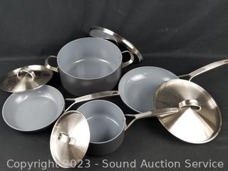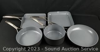 Lot #0313: 9pc Green Pan Gray Non-Stick Cookware w/4 Lids
