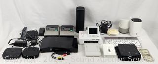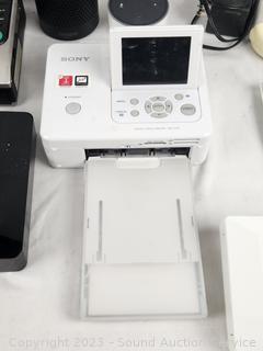 Most don't have power cords. Smart speakers, Roku TV, Tivo Bolt Ota, Olympus Camedia Digital Color Printer, Sony Digital Photo Printer & more. As is.