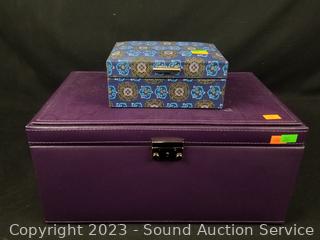 Jewelry box top is loose from box, a little glue be good as new, 6.5" x 13.5" x 8.75" & small box 2.75" x 6" x 4". Necklaces, bracelets, earrings, etc.