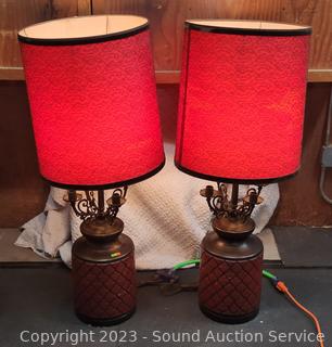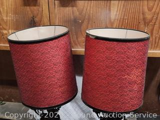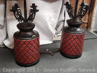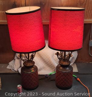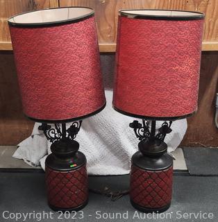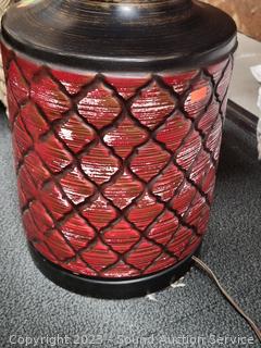 Lot #0290: Pair of Large Ceramic 46" Red Table Lamps - Work