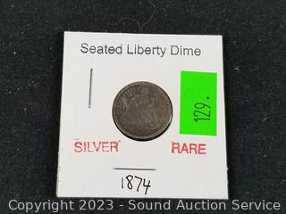 Lot #0129: Rare 1874 90% Silver Seated Liberty Dime