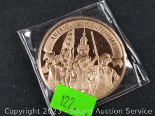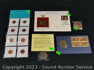 Solid Bronze American Bicentennial Medallion, 1874-1965 Sir Winston Churchill Medallion, 8 P&D US Treasury Commemorative Medallions, American Revolution Bicentennial Medal, 1991 Olympic Track & Field Sprint Gold Stamp.