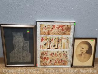 Lot #0243: Vtg. Portrait, Egyptian Print & Queen Rubbing