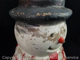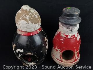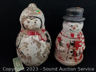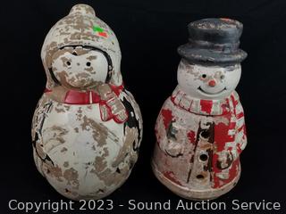 Lot #0028: 2 Pottery Snowman Statuary Candle Lamps/Fairy Lights